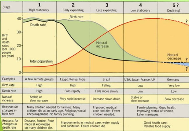 Stable population growth as the economy and educational system improve and people have fewer children.