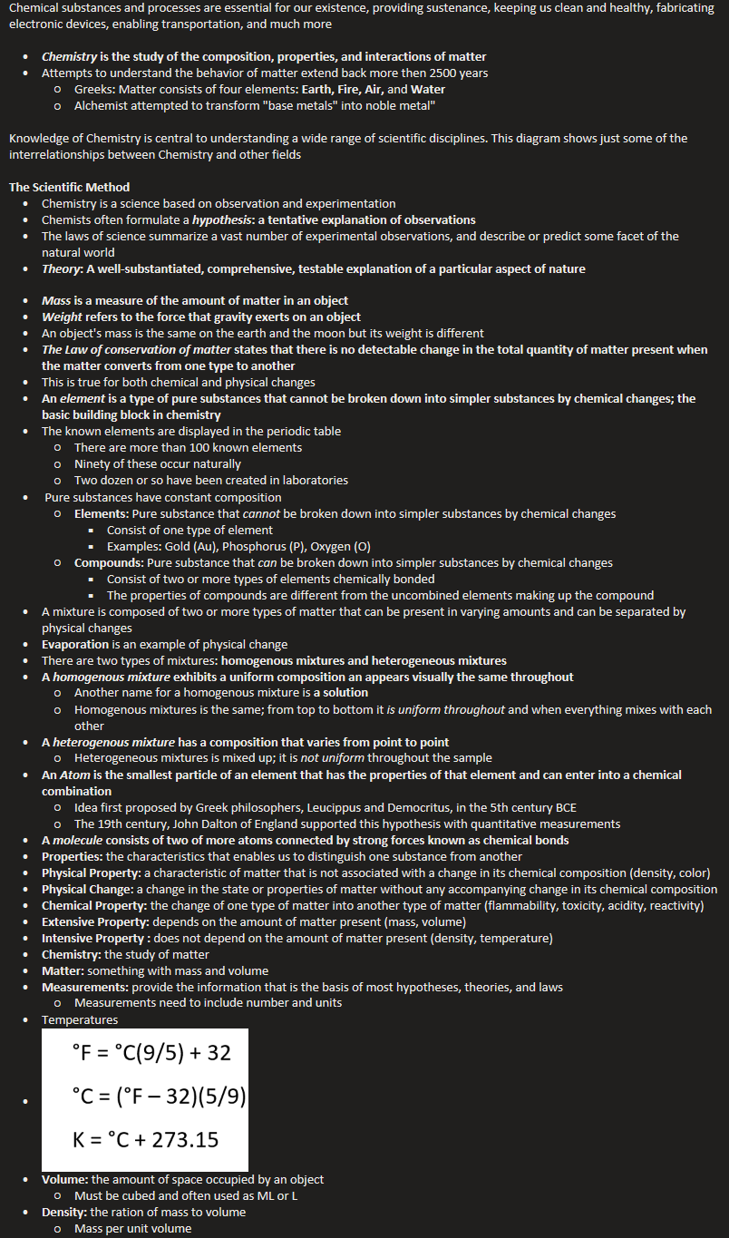 Chemistry is the study of the composition, properties, and interactions of matter