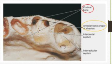 Cancellous trabeculae, between these two compact layers, acts as supporting alveolar bone. The interdental septum consists of cancellous supporting bone enclosed within a compact border.