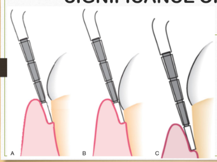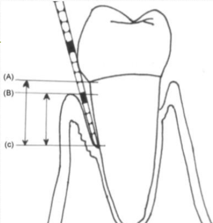 Distance between CEJ and apical point of probe penetration (A-C)