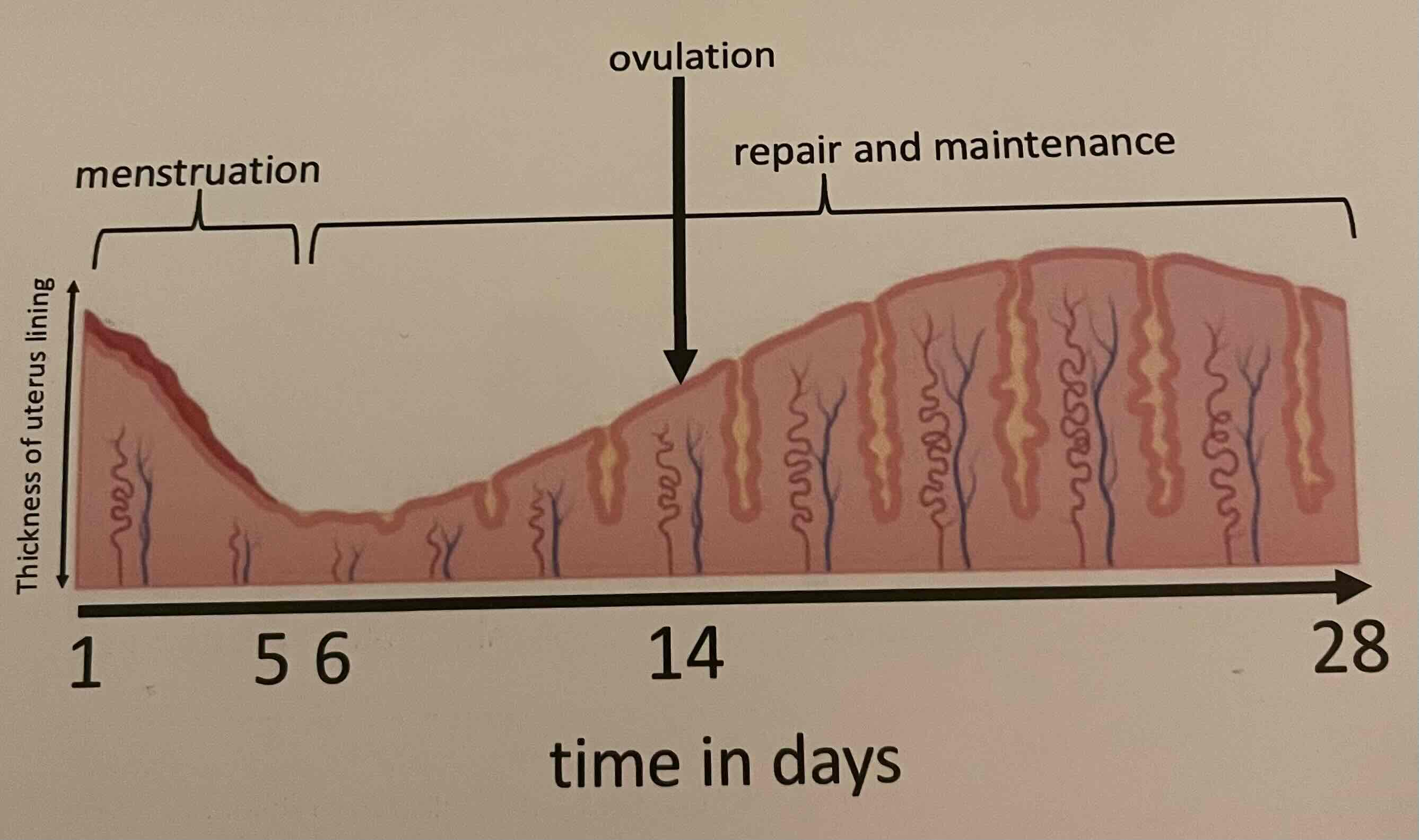 every month a females uterus lining becomes thicker with blood so it can support a fertilised egg