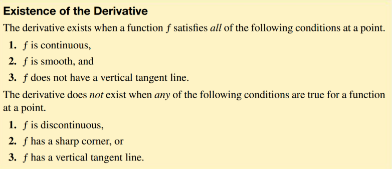 If a function is differentiable at a point, the function must also be continuous AND smooth at that point.