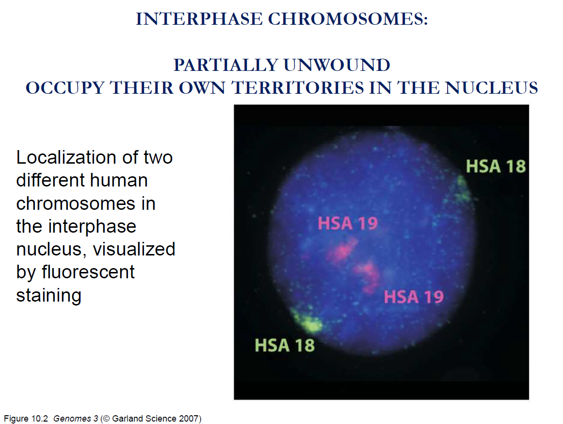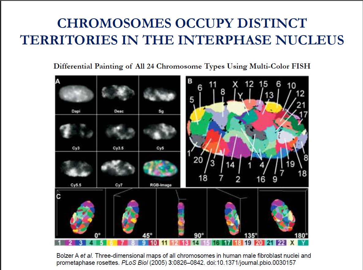 Key takeaway: Chromosomes occupy distinct territories in the nucleus of a cell in interphase.
