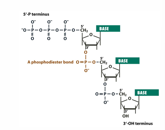 In biological processes, the direction of polymerisation of the DNA is from the 5’ to the 3’ end.