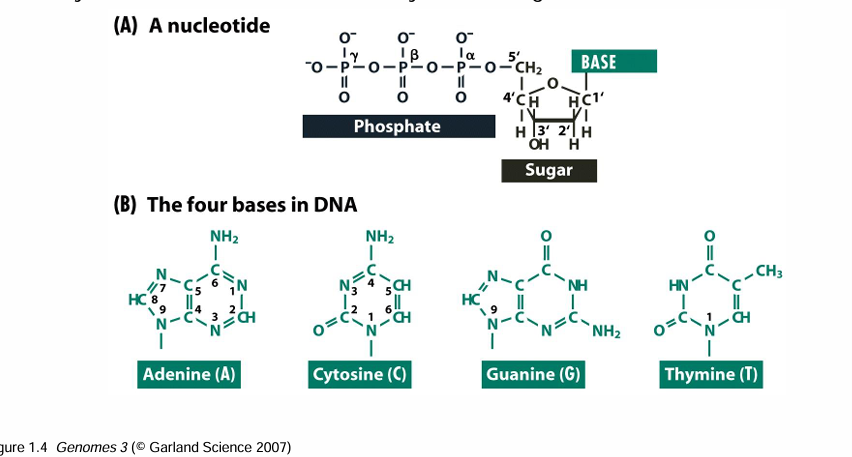 Nucleotides are made of phosphates, deoxyribose sugar, and 4 nitrogenous bases (adenine, thymine, cytosine and guanine).