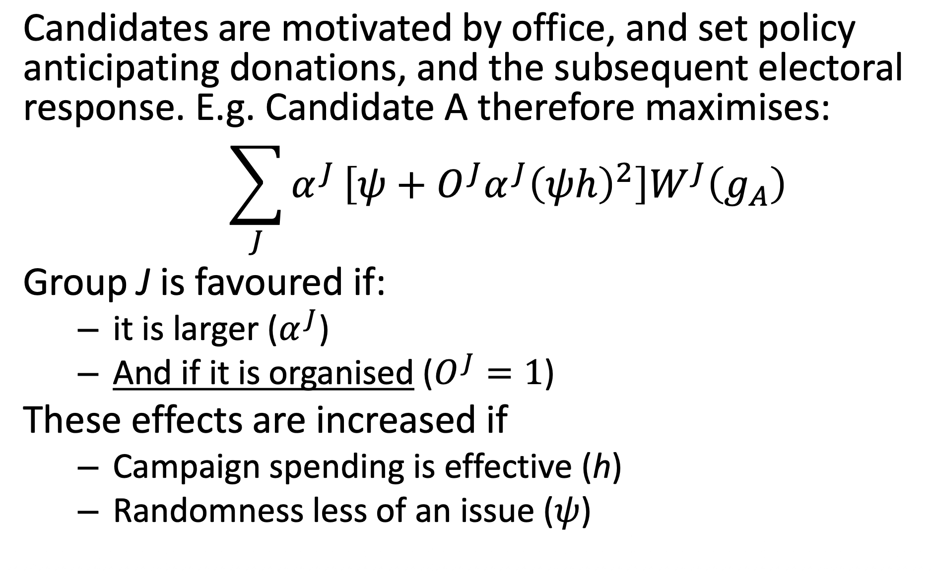 Lobbyists contribute donations to candidates, which are utilised for campaign advertising. The assumption is that such contributions augment candidate popularity.