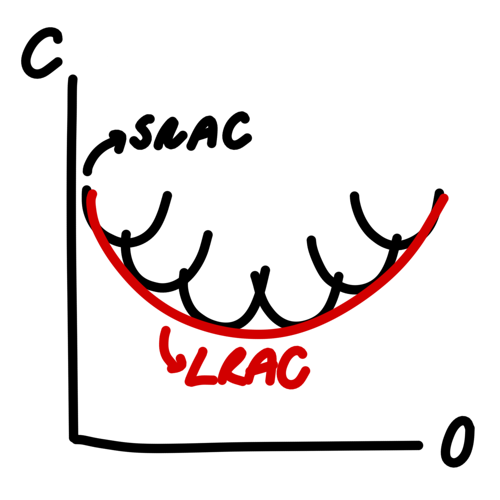 c) relationship between short-run and long-run average cost curves