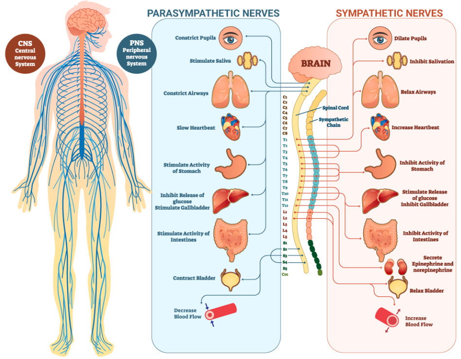 [Brain, spinal cord, nerves] Nervous System: responsible for communication between the parts of the body
