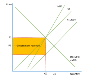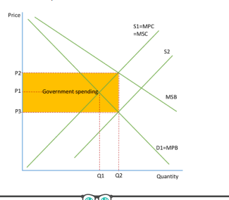 The equilibrium moves to P2Q2, where S2 = MPB = MSB.