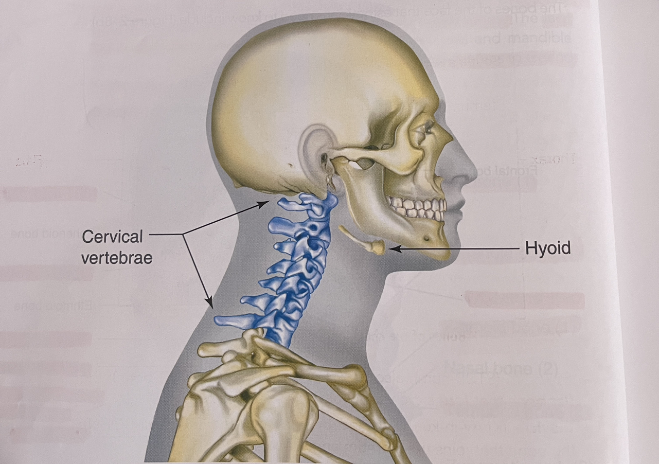 ▶ Hyoid Bone: a U-shaped bone at the base of the tongue that supports the tongue and it’s muscles.
