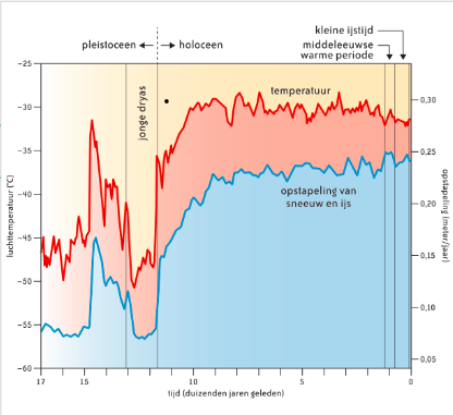 →opwarming einde ijstijd → daling temp. sterk in korte tijd in jonge dryas