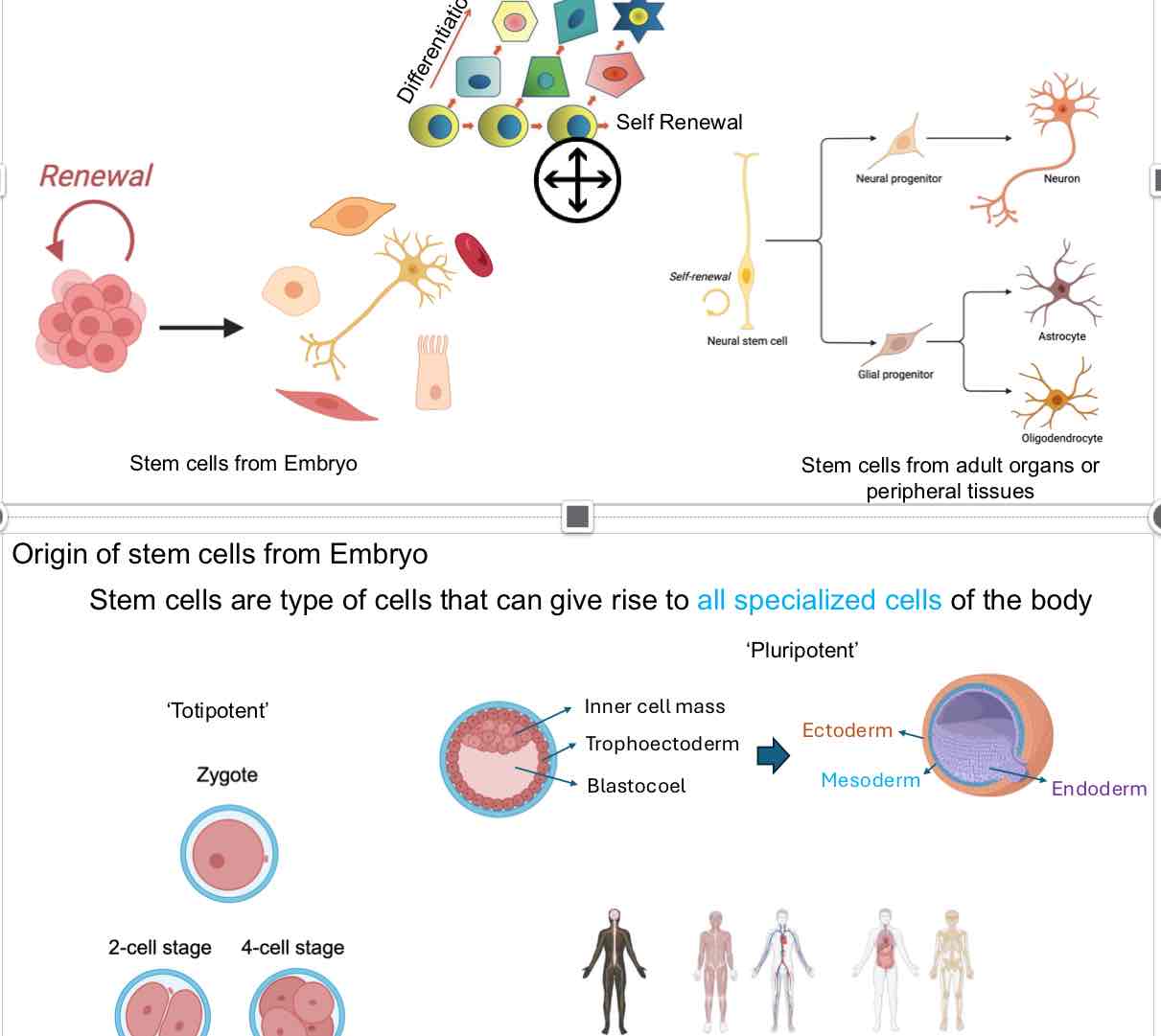 Stem cells can 'self-renew' and give rise to specialized cells within the body and can give rise to all or a subset of specialised cells of the body.