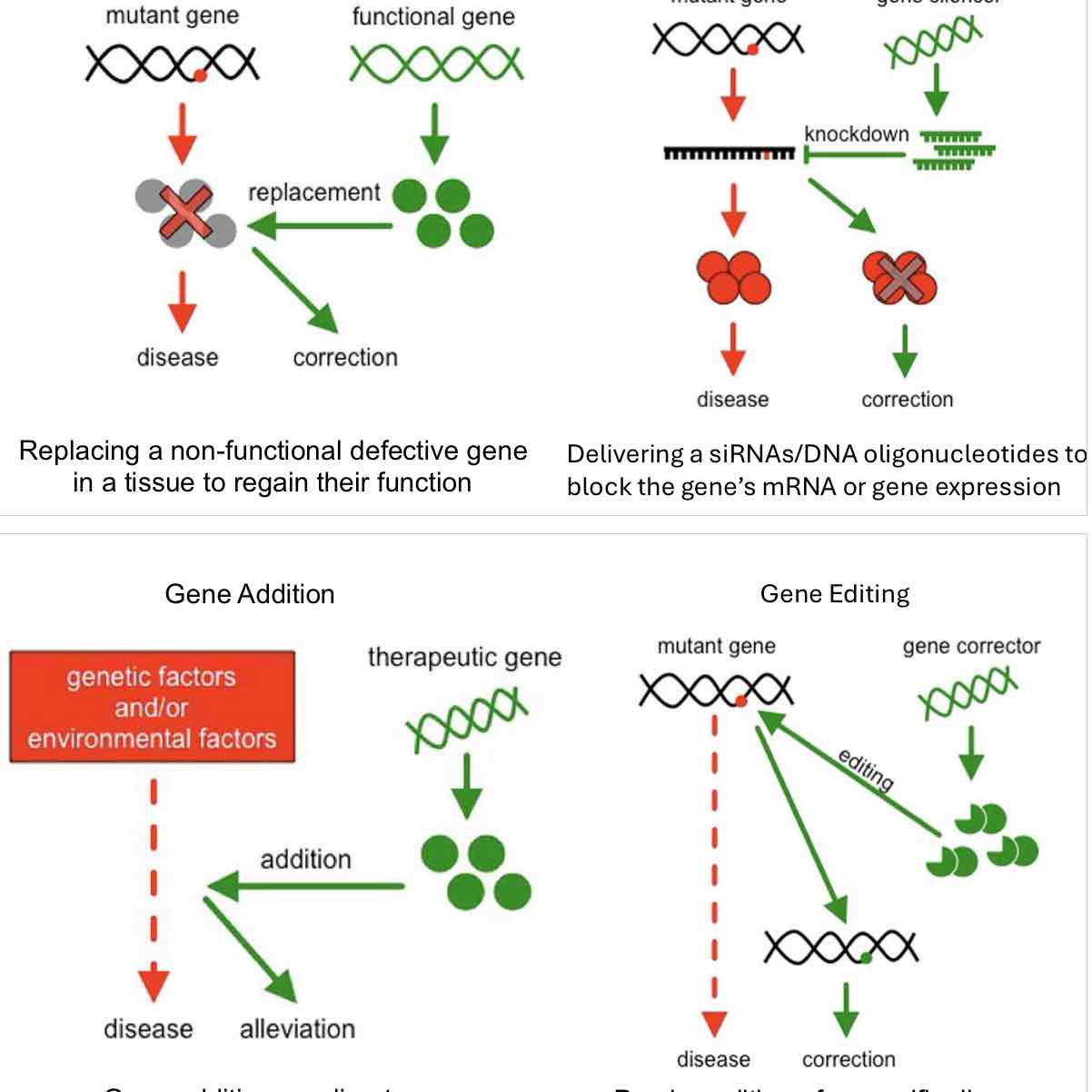 Gene Addition: Adding functional genes to ameliorate complex diseases.