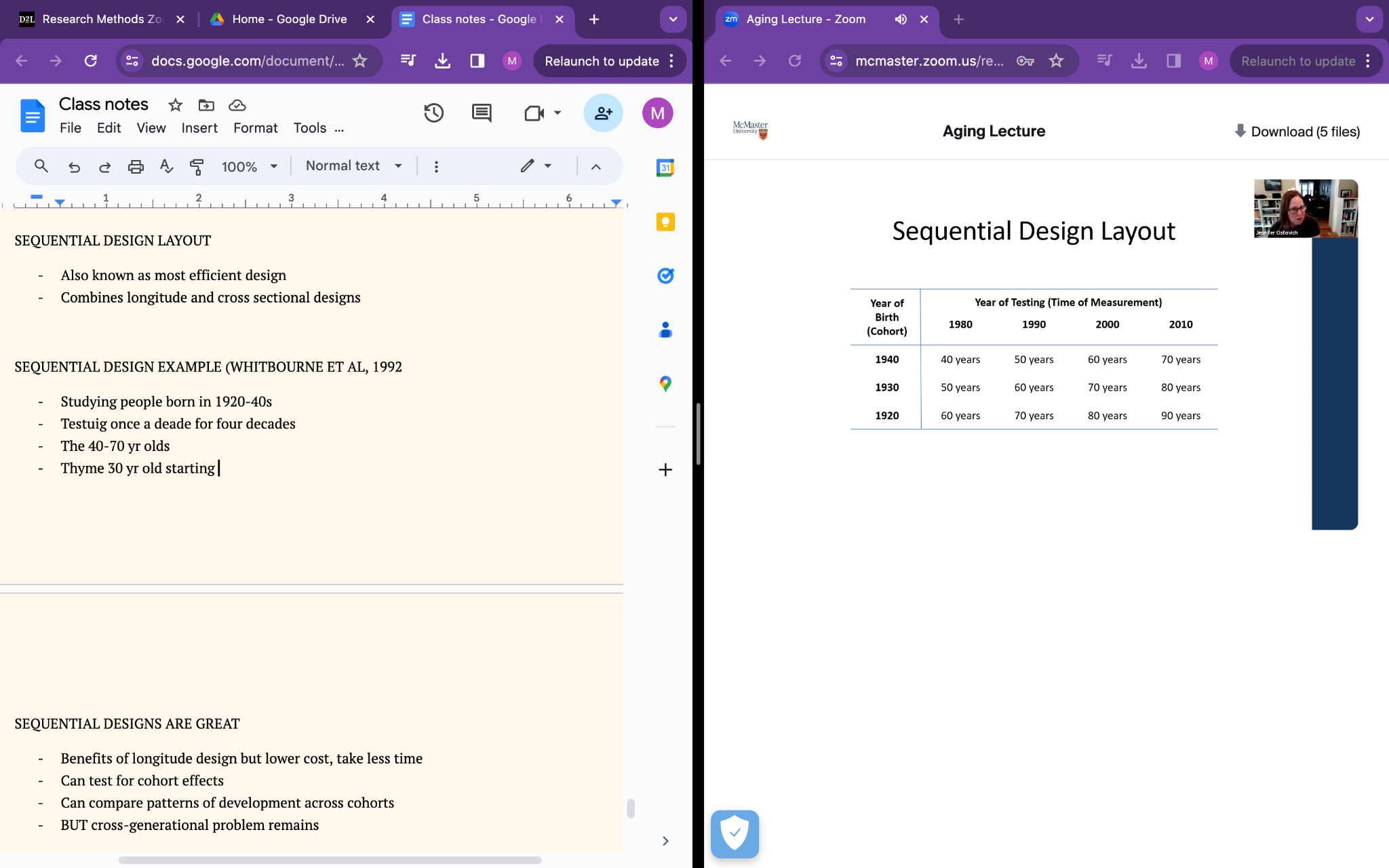 Agesit research designs - people will ask biased questions - u think everything gets worse after your 30s, so youll design research that will prove that- not good, not accuare, makes it biased. This is a seen trend in psychology7 of aging, researchers would pick anything, they would worry about a topic getting worse. For example; memory. If researchers were talking ab memory, they would just assume that asbyou age, memory just gets worse - cross sectional comapsisions