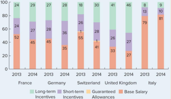 Across countries, pay structures show variations in: base salary, short-term incentives, long-term incentives, guaranteed pay