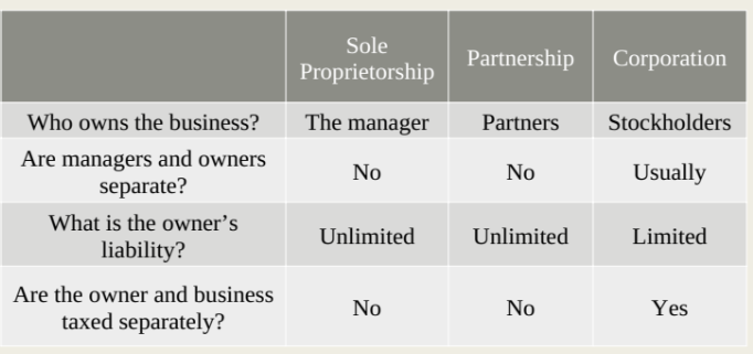 Corporation: Separate legal entity, offering limited liability to owners (shareholders), easier access to capital.