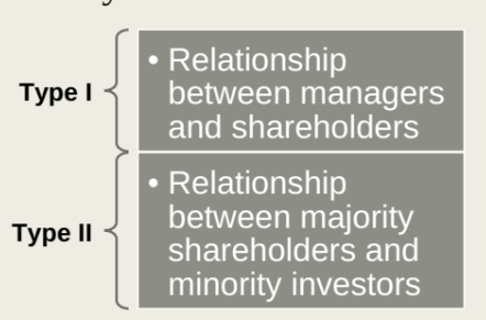 Agency cost: Value lost from agency problems or from mitigating such problems