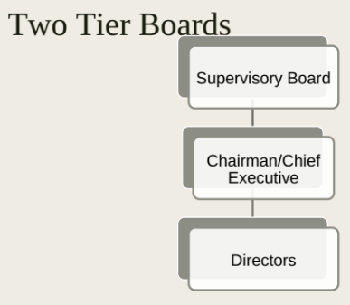 Two-Tier: Board reports to supervisory board; supervisory board includes stakeholder representation