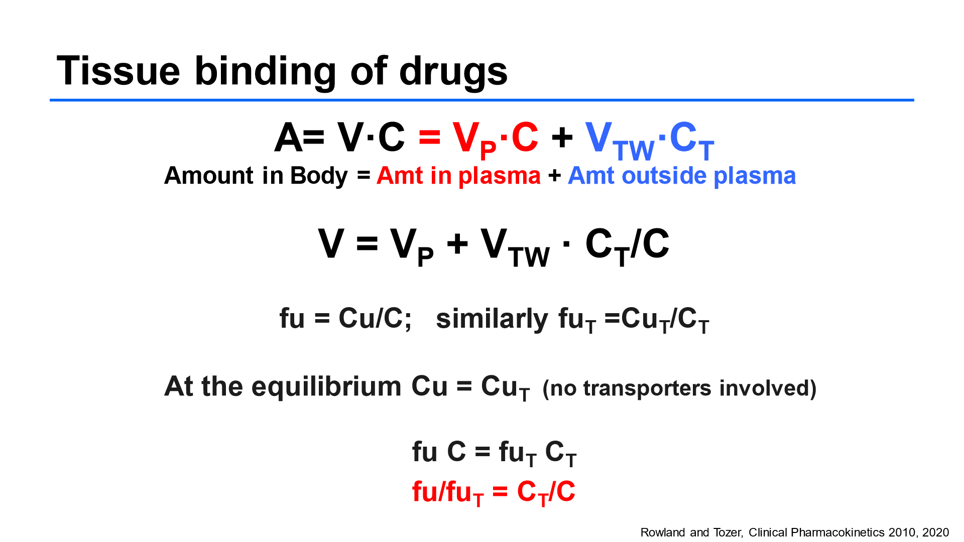 - At equilibrium the tissue distribution of a drug within the body depends upon binding to both plasma proteins and tissue components