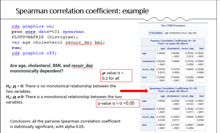 Spearman correlation coefficient