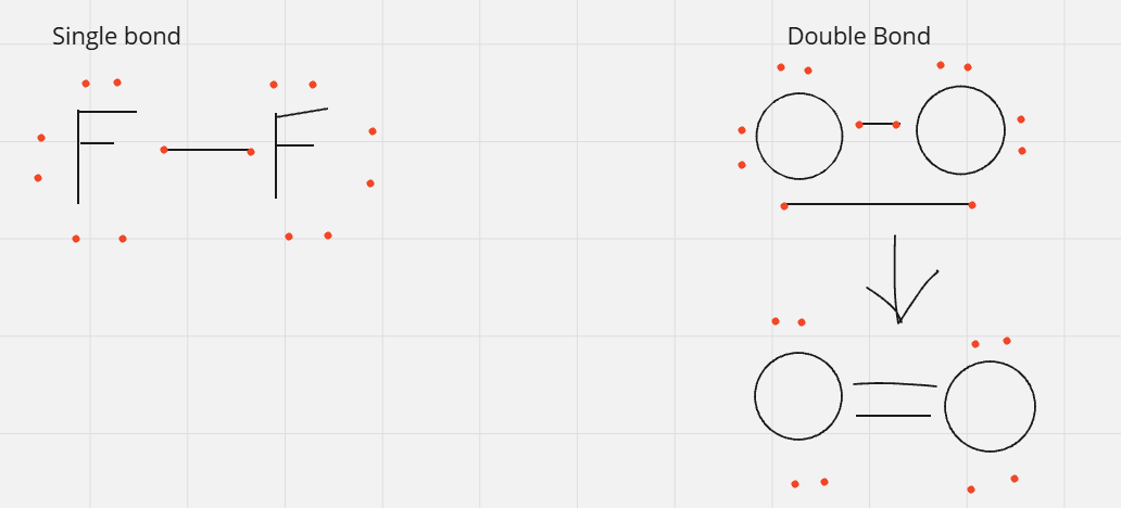 bonding pairs - pairs of electrons being shared between two atoms thus creating a covalent bond, usually shown by lines between atoms - 2 red dots with line
