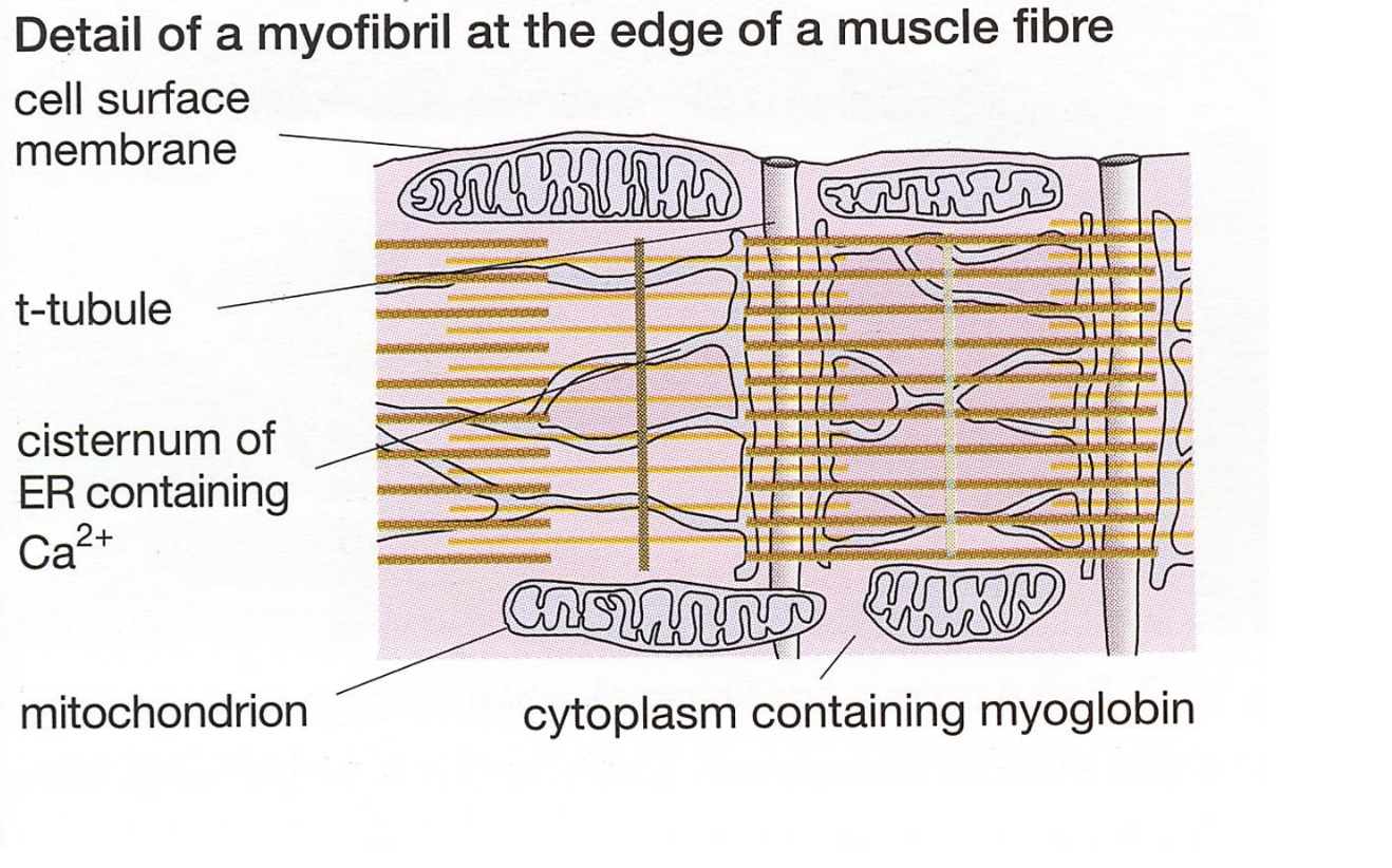 The muscle fibres are the same as most cells containing cytoplasm, mitochondria and endoplasmic reticulum