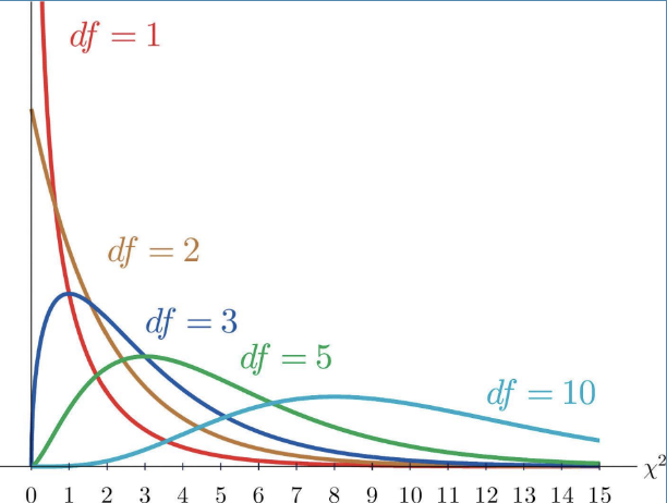 These curves have all different shapes because they are determined by the degrees of freedom—or really the amount of categories you have