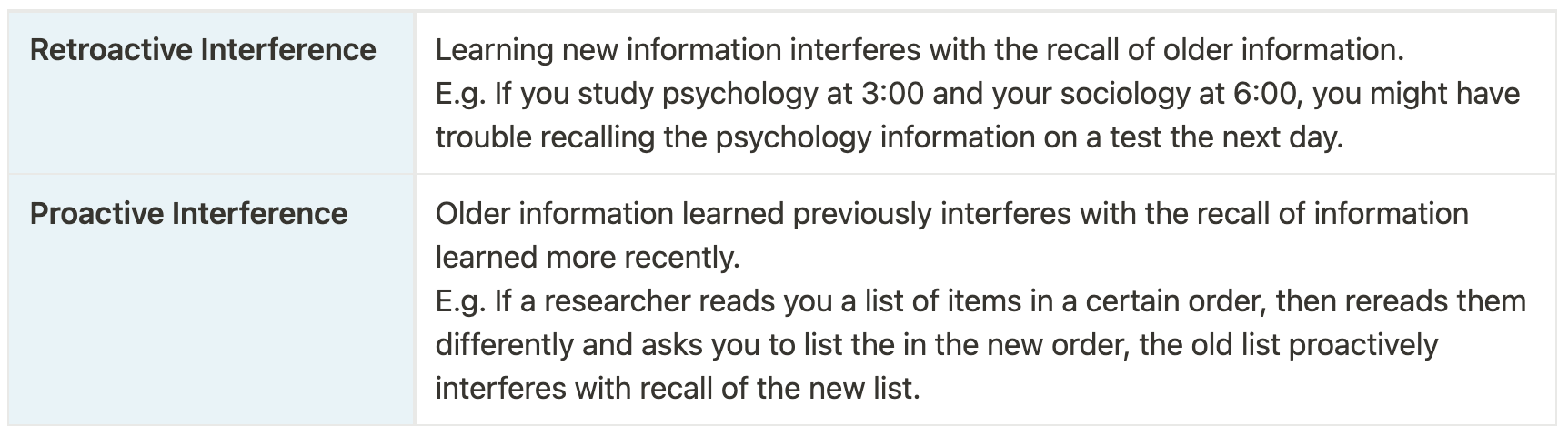- Capacity of long-term memory is unlimited, but memories can decay or fade from long-term memory (forgetting)