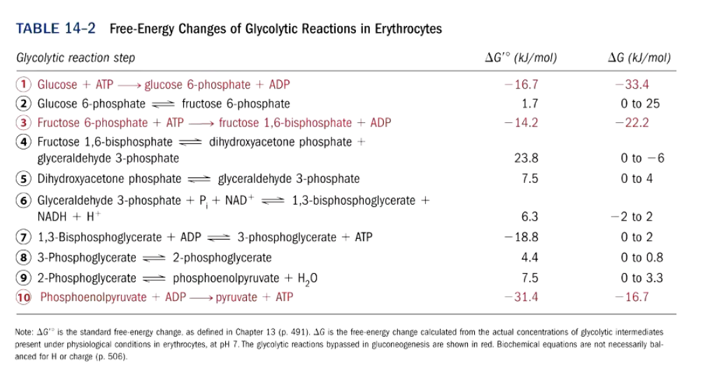 Certain glycolytic steps have large negative free energies ( \Delta G^{\circ '} \ll 0 ) and must be circumvented in GNG:
