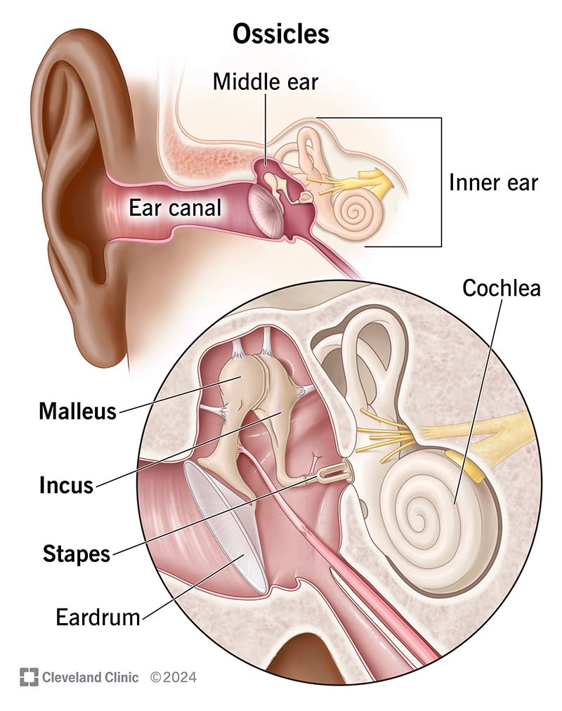 Middle ear: malleus, incus, stapes