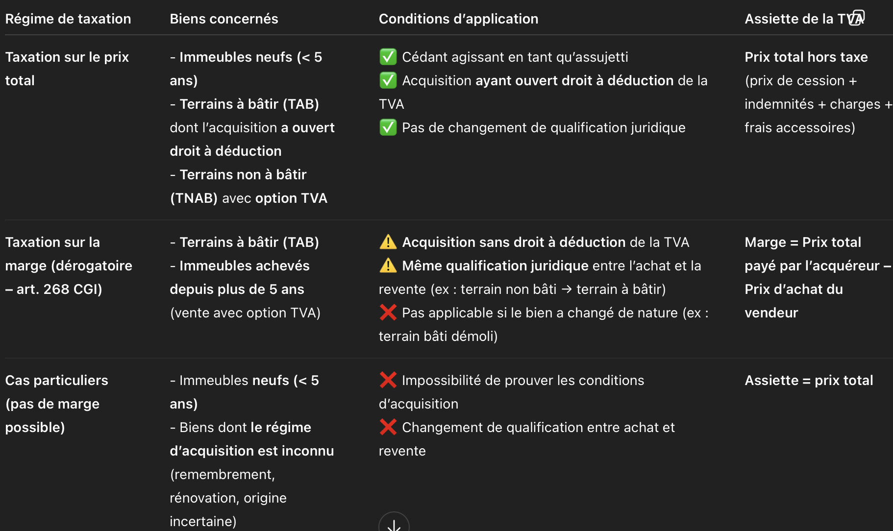 Tableau récapitulatif - assiette TVA