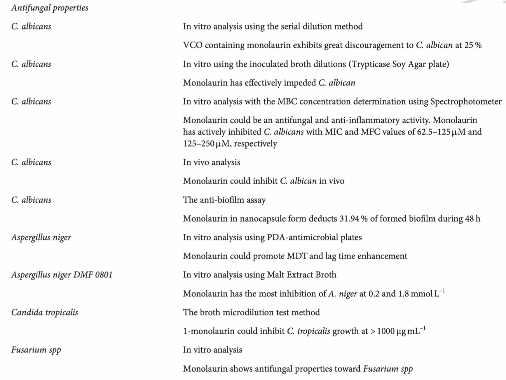 VCO as ANTIFUNGAL