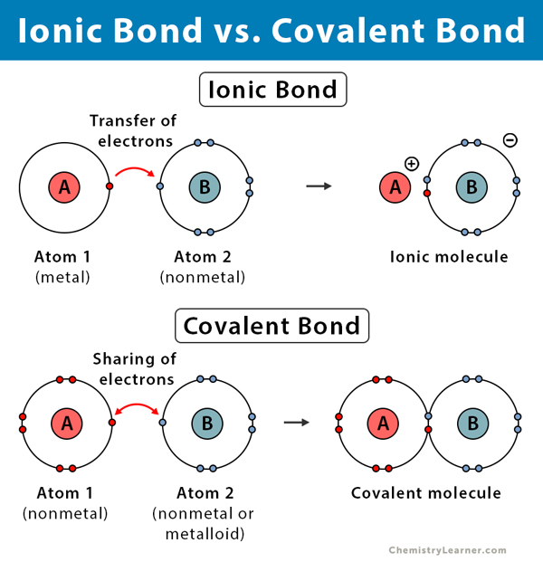 Electron donating; between one nonmetal and metal Electron sharing; between two nonmetals |