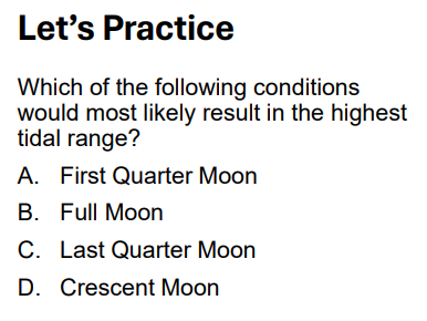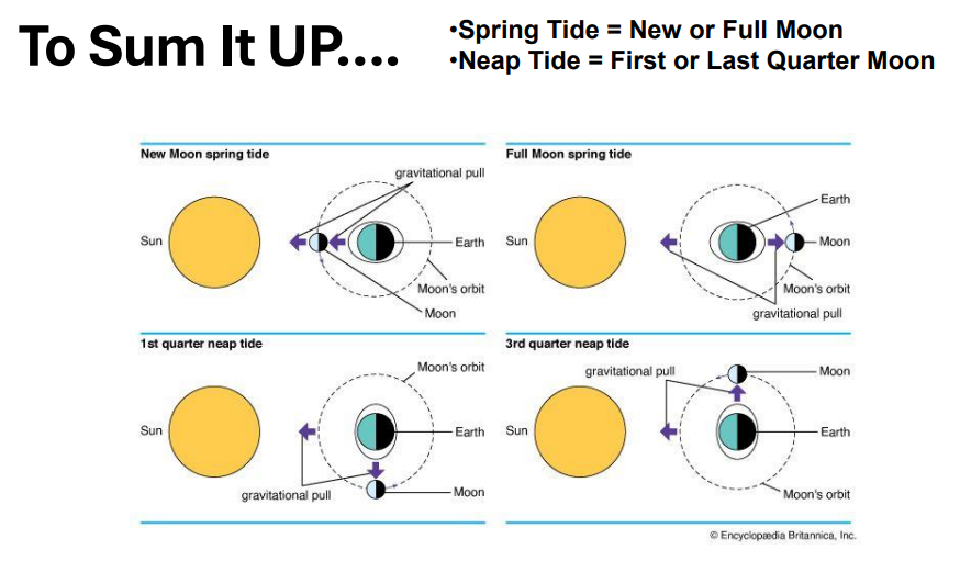 Spring Tide: Strongest tides due to aligned Sun and Moon.