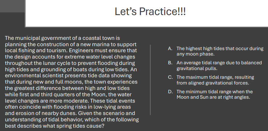 Result: Greatest tidal range (difference between high and low tide).