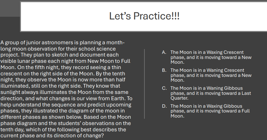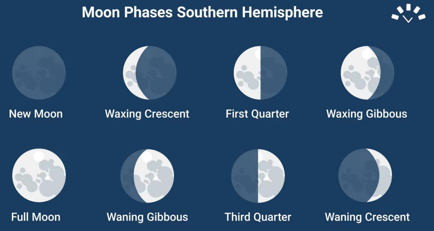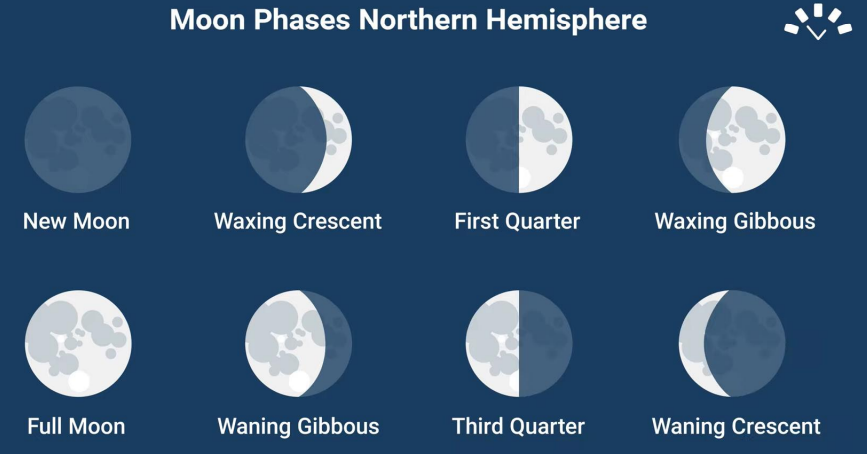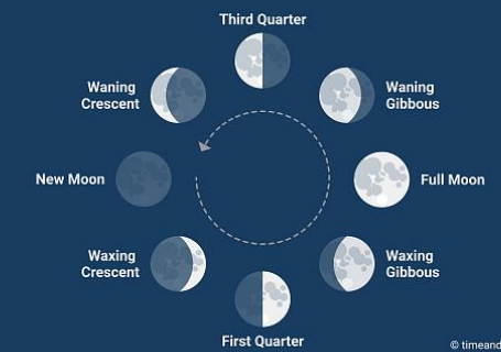 The Moon has eight phases in a lunar month consisting of four primary and four intermediate phases: