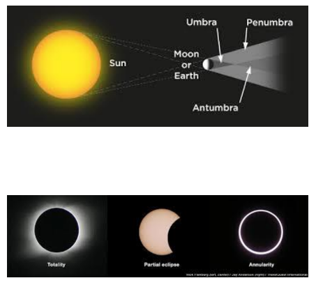 Antumbra: The shadow beyond the umbra, where an annular eclipse occurs.
