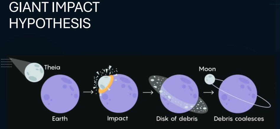 The Moon formed from a giant impact between the proto-Earth and another protoplanet, often called "Theia," about the size of Mars.