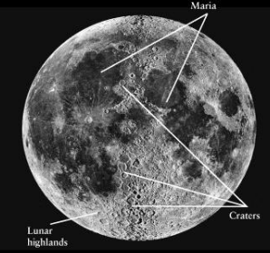 Maria: Basaltic plains on the Moon's surface.