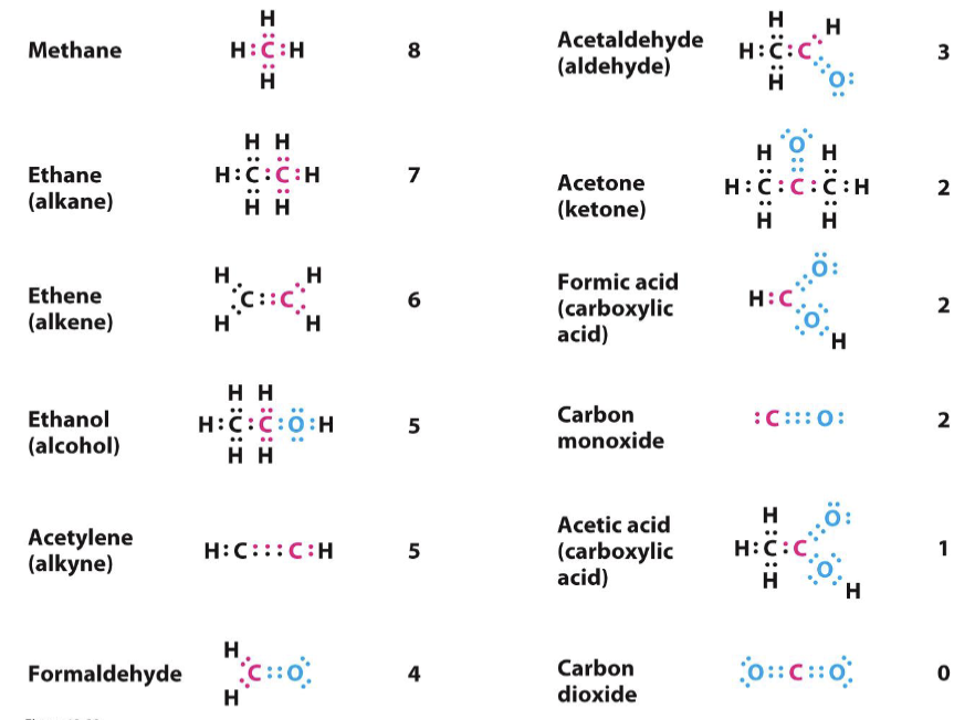 Fully oxidized carbon exists as CO2; fully reduced as alkanes (only H attached).