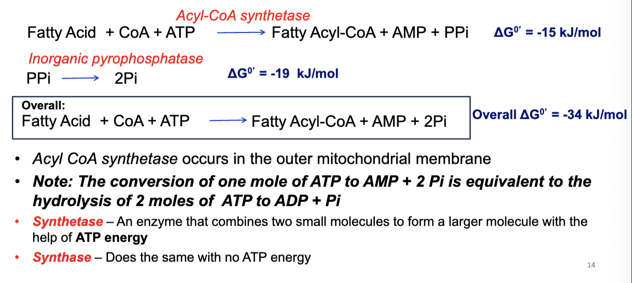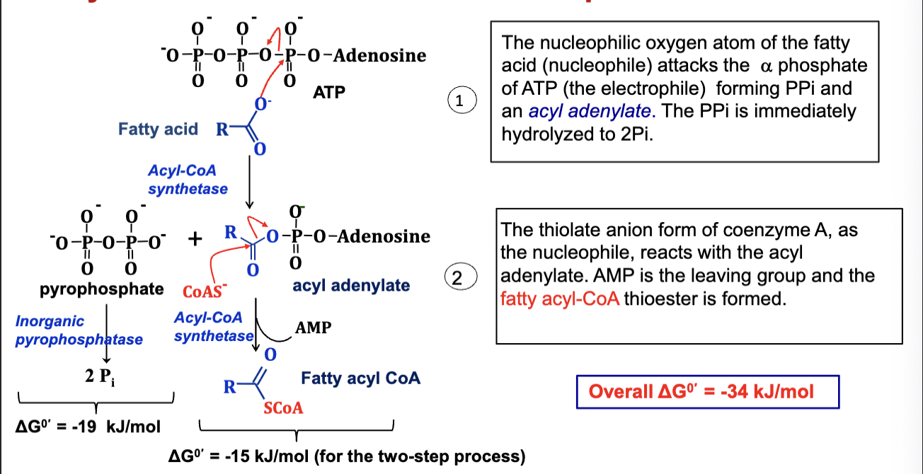 Fatty acids are prepared for catabolism by activating