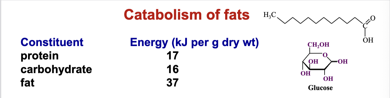 Fats yield almost twice the energy of carbohydrates or proteins when oxidized.