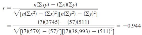 Solution: Find the values of xy, x2, and y2; place these values in the corresponding columns of the table. n=7 (number of data pairs).
