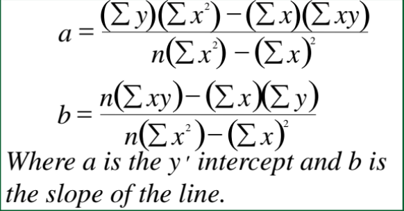 The equation of the line is y' = a + bx.