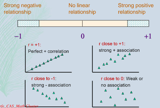 Range of values for the correlation coefficient: