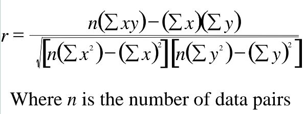Formula for the correlation coefficient (r):