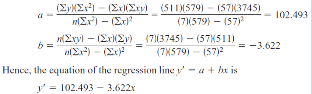 y’ = 102.493 – 3.622x.