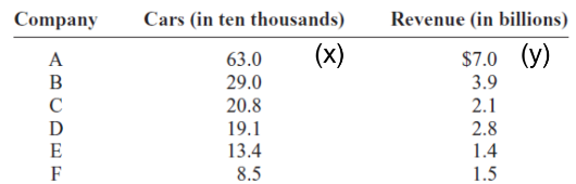 Problem1: The data shown for car rental companies in the United States for a recent year. Test the significance of the correlation coefficient. Use α=0.05
