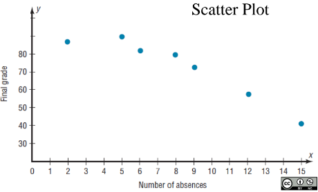 Problem1: Construct a scatter plot for the data obtained in a study on the number of absences and the final grades of seven randomly selected students from a statistics class.
