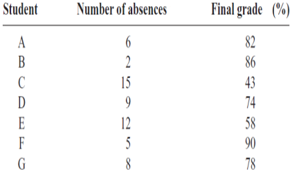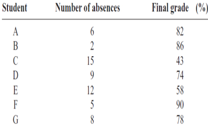 Problem1: Data obtained in a study on the number of absences and final grades of seven randomly selected students from a statistics class